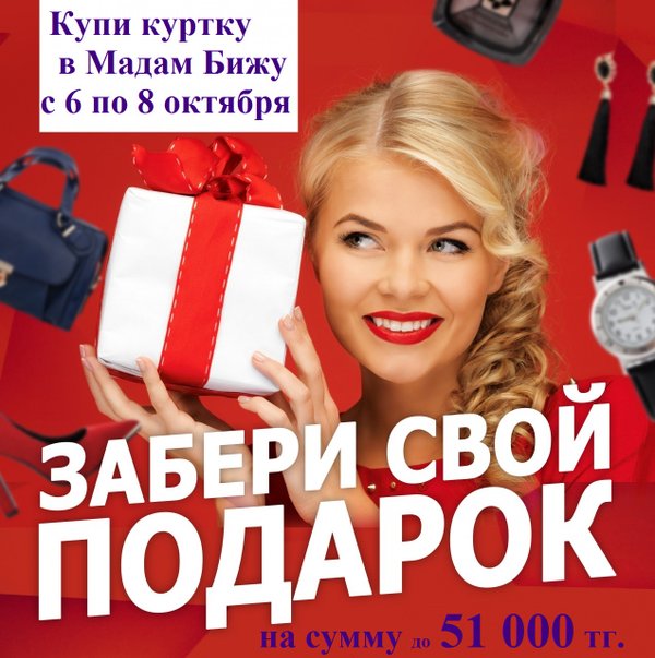 Татьяна Иванова (06.10.2018): Осеннее СУПЕР ПРЕДЛОЖЕНИЕ от Мадам Бижу Купи куртку и получишь ПОДАРОК на сумму до 51 000 тенге. Приходите к нам за выгодой! Если вы хотите своевременно узнавать о скидках и подарках в нашем салоне подпишитесь на нашу специальную скидочную страничку @salemadamb место: Мадам Бижу.
