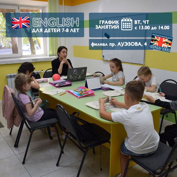 В филиале «OXFORD TEAM» в районе Стрелки есть пару мест на английский для детей 7—8 лет Уровень: начинающие, детки которые еще плохо пишут и читают на английском ️Дни занятий: ВТ, ЧТ ⌚Время занятий: с 13:00 до 14:00 Как записаться/задать вопросы? В нашем профиле @oxfordteamkz нажмите кнопку «Контакты» ️ «Позвонить » или Перейдите по ссылке в нашем профиле ️Контакты филиалов ️ пр. Ауэзова, 4 (так вы сможете связаться с администратором филиала в WhatsApp). или ️ Оставляйте заявку в Direct