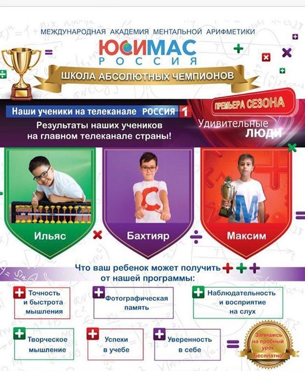По ссылке анонс на шоу «Удивительные люди», в котором наши студенты UCMAS поражают всю страну! На видео вы можете увидеть Максима, а уже завтра будет премьера на телеканале Россия-1, где вас ждет Ильяс.