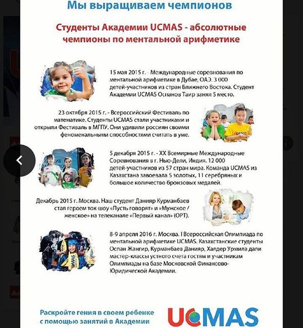 Официальная группа Вконтакте международной академии ментальной арифметики UCMAS Kazakhstan