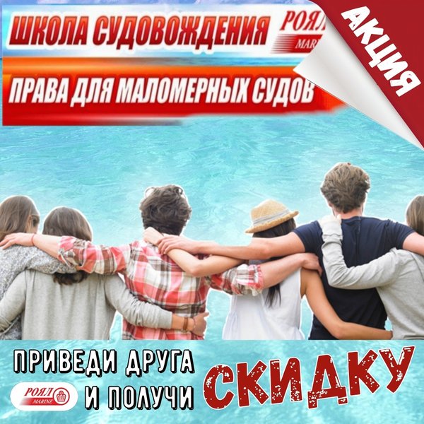 Расскажи друзьям об Учебном центре «Роял Marine» и получи скидку Как? Очень просто! Школа судовождения объявляет супер-акцию для обучения друзей Пришел с другом на курсы управления маломерными судами – получите скидку 10% на обучение И тебе — хорошо, и другу – выгодно! Ведь в этом случае стоимость обучения каждому составит 18 000 тенге. Если ты недавно прошел обучение в нашей Школе судовождения не ранее текущего года – подари скидку другу! Стоимость обучения для твоего друга составит 18 000 тенге. Друг обязательно оценит такой подарок … — Читать дальше