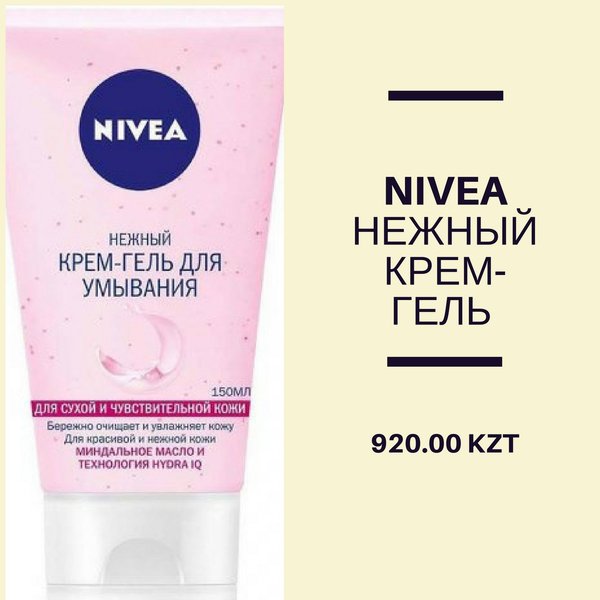 Nivea НЕЖНЫЙ КРЕМ-ГЕЛЬ ДЛЯ УМЫВАНИЯ ДЛЯ СУХОЙ КОЖИ Цена: 920.00 KZT нежно и эффективно очищает кожу от загрязнений, поддерживая естественный уровень увлажнённости экстракт миндаля и масло календулы успокаивают кожу, делая её мягкой и бархатистой не содержит щелочного мыла, не сушит кожу специальная формула увлажняет кожу, сохраняя ее эластичность РЕЗУЛЬТАТ Чистая, увлажненная и мягкая кожа. Дукен.кз это не просто магазин с кучей товаров. Дукен – Ваш помощник в Ваших каждодневных хлопотах. Мы берем на себя бытовую трату времени на простои в очер… — Читать дальше