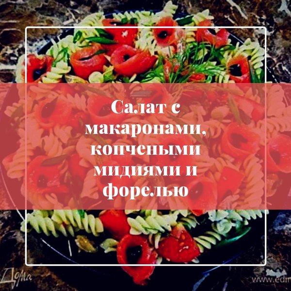 ШАГ 1 Отварим макароны в подсоленной воде согласно инструкции на упаковке. ШАГ 2 Приготовим заправку. В миску выдавим сок половины лимона, добавим укроп и нарезанный базилик. Добавим горчицу, абрикосовый джем (можете заменить медом, если любите его), черный перец. Вольем оливковое масло и бальзамический соус. Перемешаем и по вкусу посолим. ШАГ 3 К макаронам добавим заправку. ШАГ 4 Перемешаем. ШАГ 5 Добавим нарезанный помидор и зеленый лук. ШАГ 6 Затем — подкопченные мидии. Перемешаем ШАГ 7 Выкладываем салат на блюдо. Сверху раскладываем слабосо… — Читать дальше
