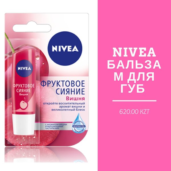 Nivea БАЛЬЗАМ ДЛЯ ГУБ ФРУКТОВОЕ СИЯНИЕ ВИШНЯ Цена: 620.00 KZT КАК ЭТО РАБОТАЕТ эффективно и бережно ухаживает за губами дарит губам восхитительный фруктовый аромат придает легкий розовый оттенок NIVEA — ВСЁ ДЛЯ САМЫХ НЕЖНЫХ ПОЦЕЛУЕВ! Дукен.кз это не просто магазин с кучей товаров. Дукен – Ваш помощник в Ваших каждодневных хлопотах. Мы берем на себя бытовую трату времени на простои в очередях, или беспорядочные метания мимо тысячи прилавков. Мы предлагаем Вам совершенно новый вид покупок и хозяйственных товаров. У нас есть: Детское питание, бака… — Читать дальше