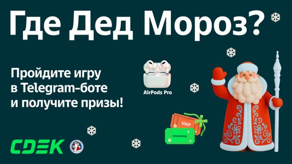 Две недели до Нового года — а значит, Всероссийский Дед Мороз из Великого Устюга уже отправился в праздничное путешествие! По пути он инспектирует пункты выдачи СДЭК и оставляет нам открытки-подсказки Мы показываем фото — вы угадываете город. Всё просто: смотрите внимательно, вводите вариант в боте и ждёте результат. Никакой спешки, просто тёплая игра на внимательность. Все участники получат наш специальный новогодний стикерпак. А ещё до 21 декабря можете получить шанс забрать другие подарки: • одни из 20 AirPods; • один из 500 промокодов на 50… — Читать дальше