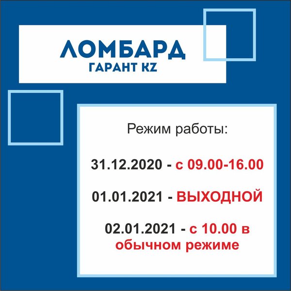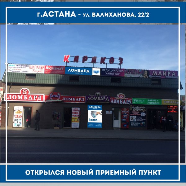 «Ломбард Гарант KZ» г.Астана Открылся новый приемный пункт по адресу: г.Астана, пр.Абылай хана, д.29 (ТД Жибек Жолы) режим работы с 10:00 до 19:30 телефон:..