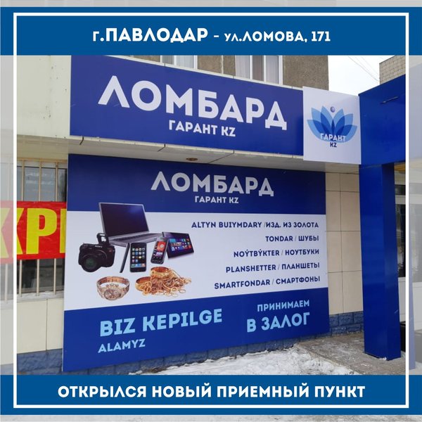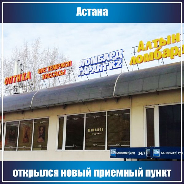 «Ломбард Гарант KZ» г.Астана Открылся новый приемный пункт по адресу: Г.Астана, пос. Косшы, Жангильдина, 1/1 режим работы с 10:00 до 20:00
