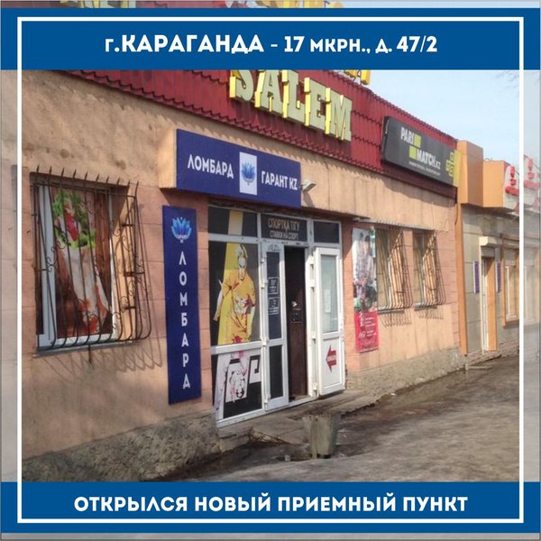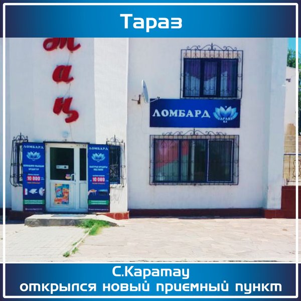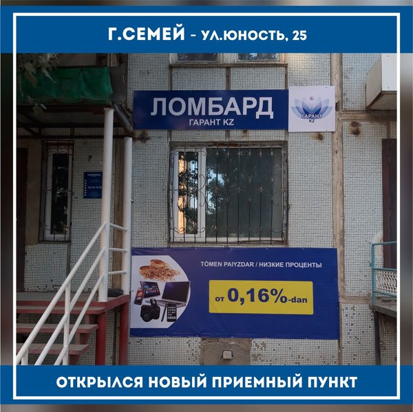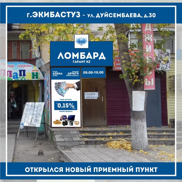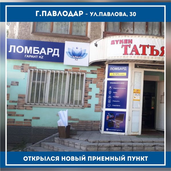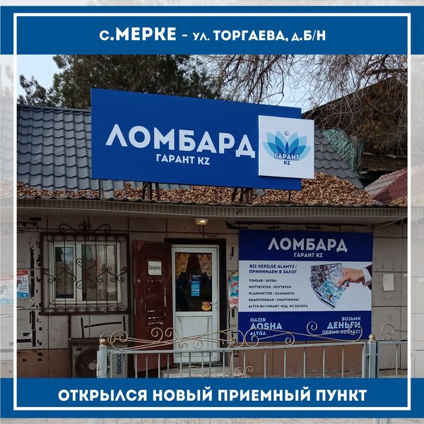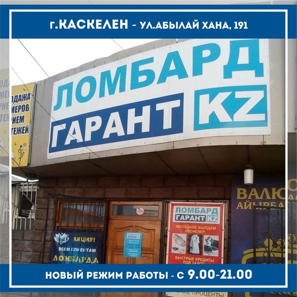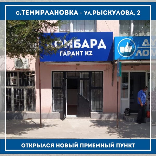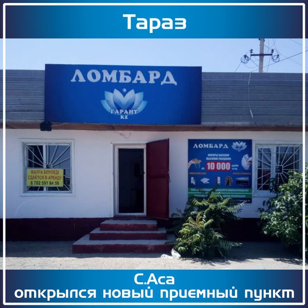 «Ломбард Гарант KZ» г.Тараз Открылся новый приемный пункт по адресу: г.Тараз, с.Аса,ул.Абая, д.103 режим работы с 09:00 до 19:00 телефон: