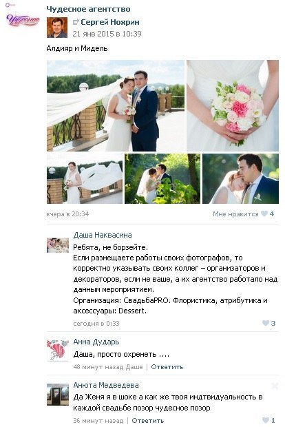 нные. Надоело оправдываться за них, обсуждать эти ситуации и волей-неволей становиться участником всего того говнеца, что творится за кулисами красивого свадебного бизнеса). Пора бы уже перестать скатываться в эти помои. Уважаемые коллеги, будьте успешными не за счет других, а за счет своих собственных работ. Ведь это так просто.